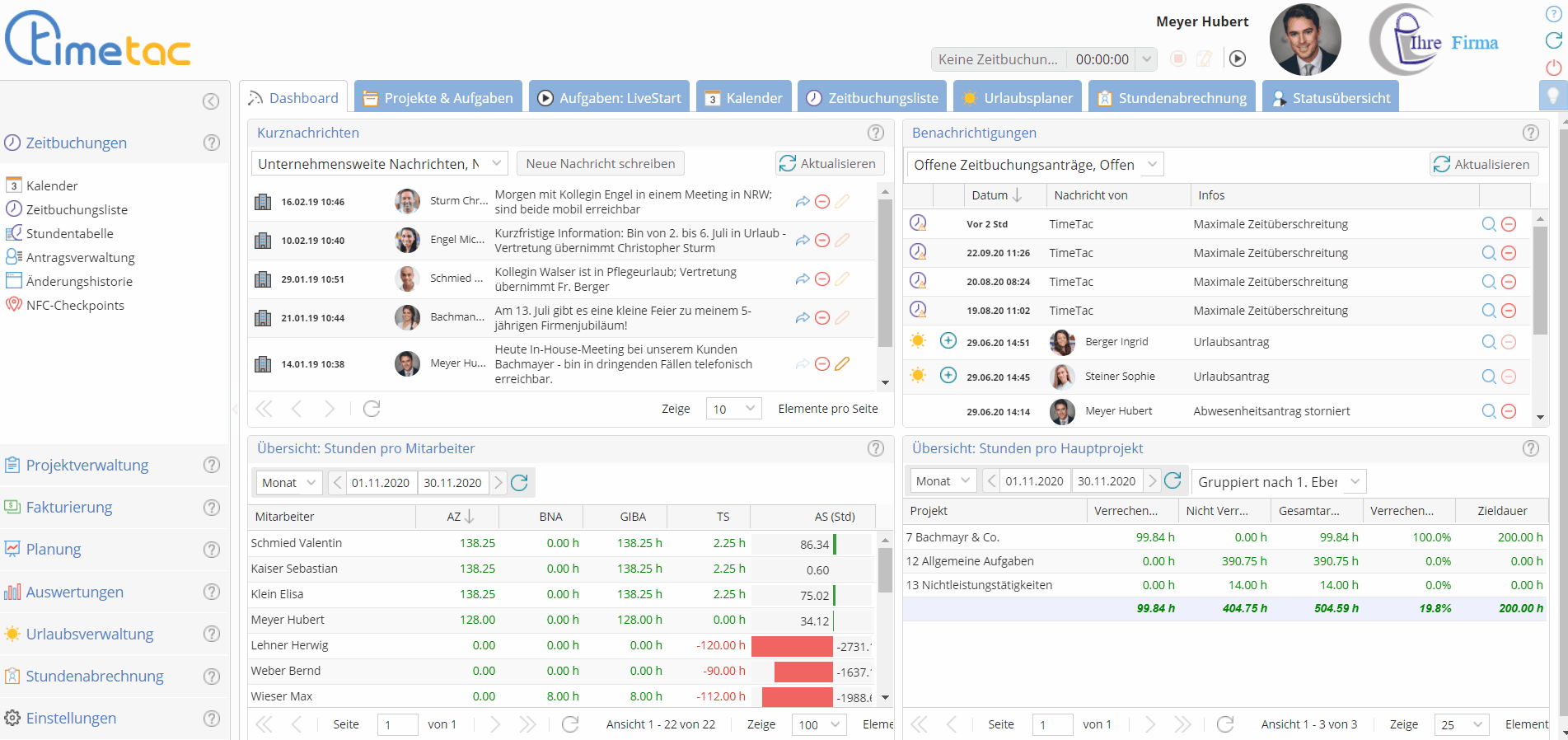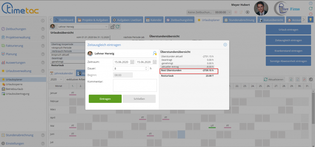 Ist diese Einstellung aktiviert, dürfen auch bei negativen Arbeitszeitsaldo neue Zeitausgleichsanträge gestellt werden.