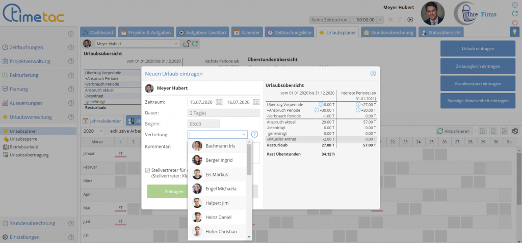 Vertretung: Aktiv für Zeitausgleichsanträge