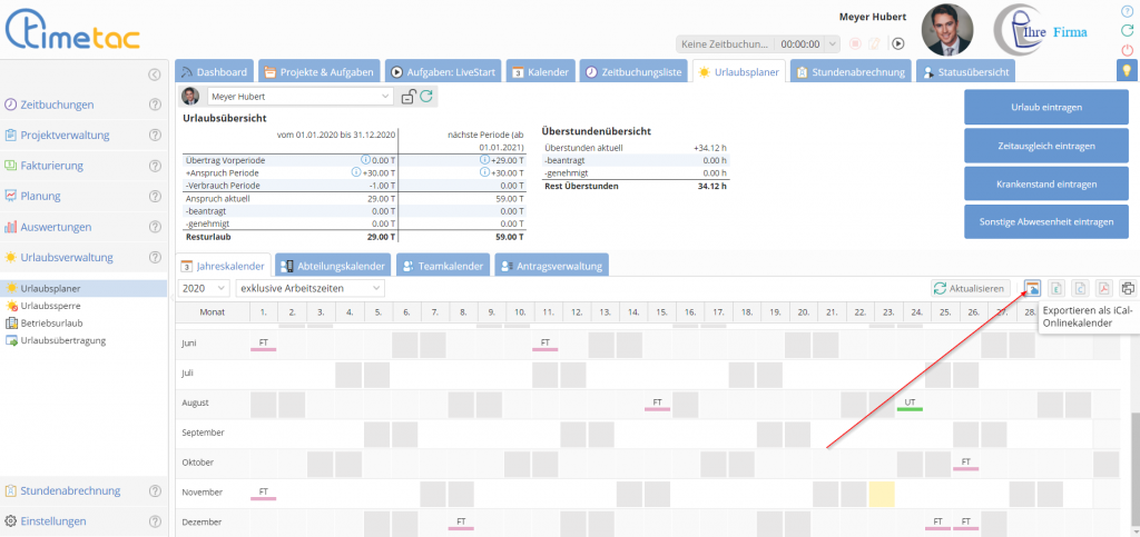 Ist diese Einstellung aktiviert, steht die Funktion Abwesenheitsinformationen per iCal zu abonnieren im Account zur Verfügung. Unter folgendem Link erhalten Sie weitere Informationen zu diesem Themahttps://support.timetac.com/de/basisfunktionen/timetac-mit-outlook-synchronisieren/