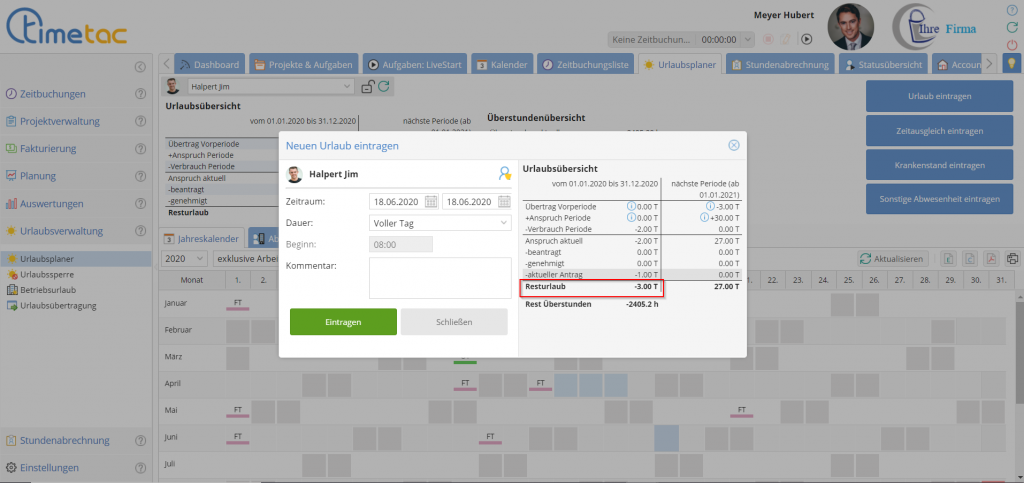 Urlaubsantrag erlauben wenn Urlaubssaldo negativ ist