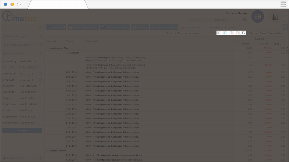 In TimeTac können Sie in den verschiedenen Auswertungen unterschiedliche Exports durchführen.