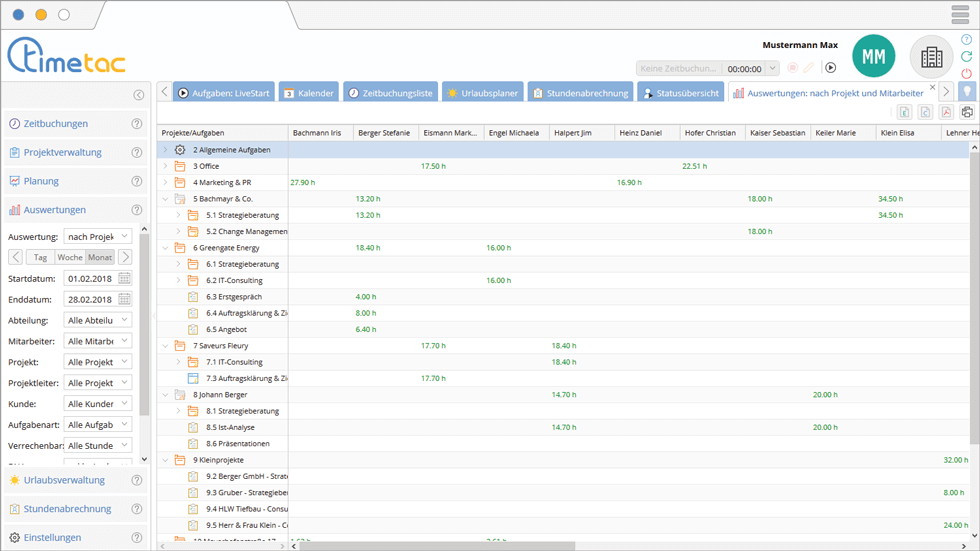Im Menü Auswertungen können Sie verschiedene Filter- und Selektionsmöglichkeiten definieren. Dies ermöglicht Ihnen die notwendigen Daten genau auf Ihre Bedürfnisse anzupassen.