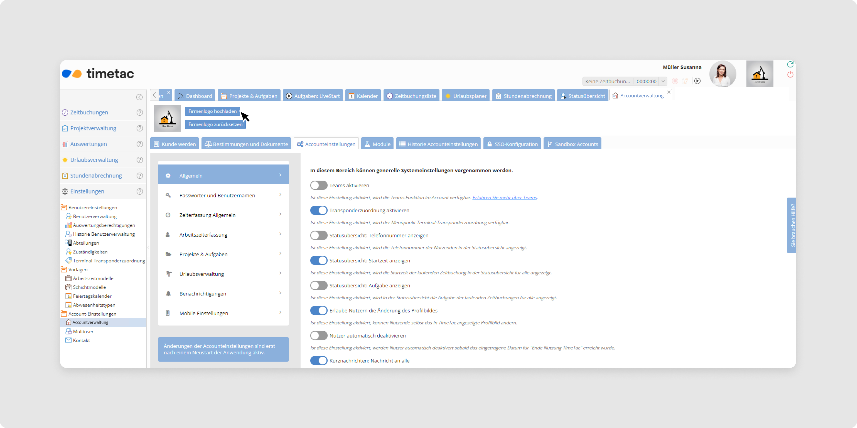Und schon erscheint Ihr Firmenlogo im TimeTac-Account.