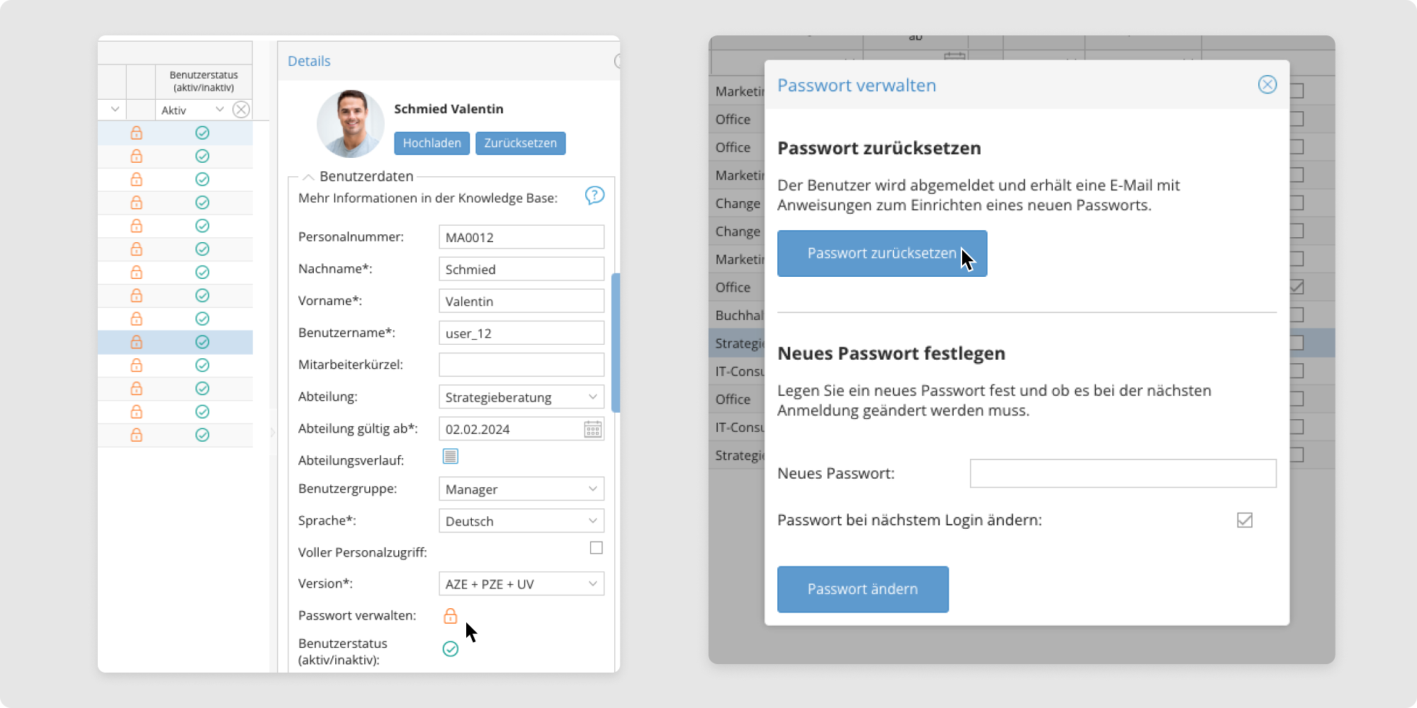 - Wählen Sie die Mitarbeitenden aus, deren Passwort Sie zurücksetzen möchten.