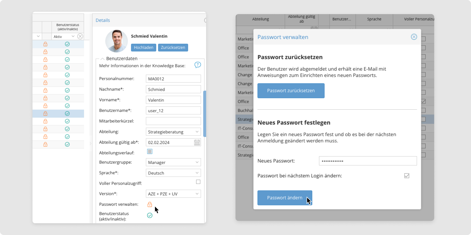 - Wählen Sie die Mitarbeitenden aus, deren Passwort Sie zurücksetzen möchten.