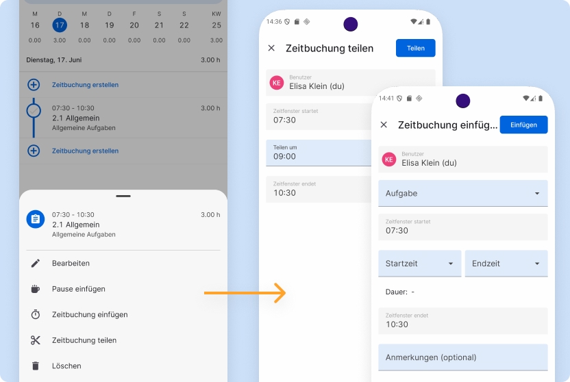 Ob minutengenaues Aufteilen oder schnelles Hinzufügen neuer Buchungen – unsere zwei neuen Zeitbuchungsfunktionen machen Ihre Planung noch effizienter.
