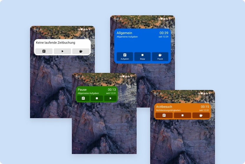 Die Sperrbildschirm-Widgets können jetzt noch flexibler in verschiedenen Größen arrangiert werden. Damit können Sie TimeTac noch individueller Ihren Bedürfnissen anpassen.