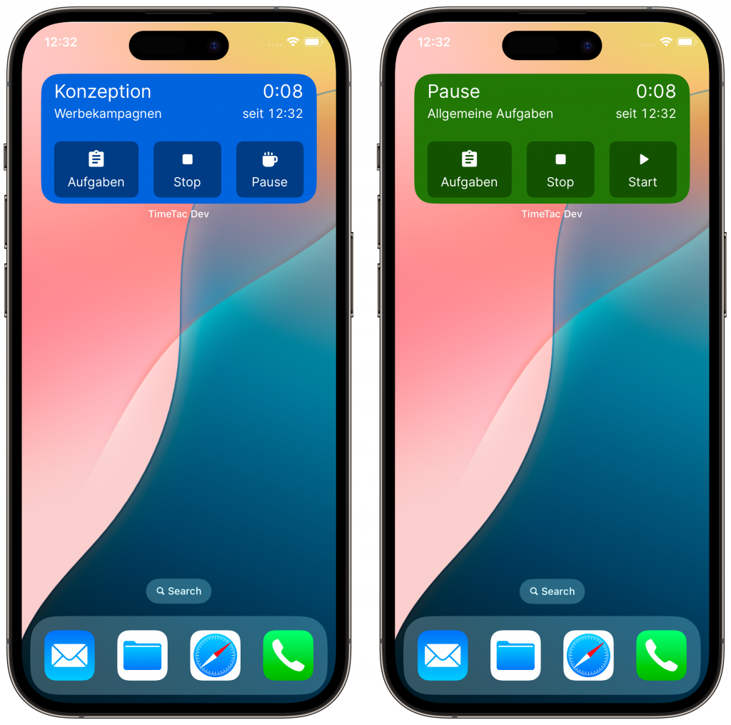 Wer über das Handy live Zeit erfasst, kann sich freuen: Nun können Sie die Live-Zeiterfassung direkt als Widget auf den Homescreen legen und Ihre Arbeitszeit buchen.