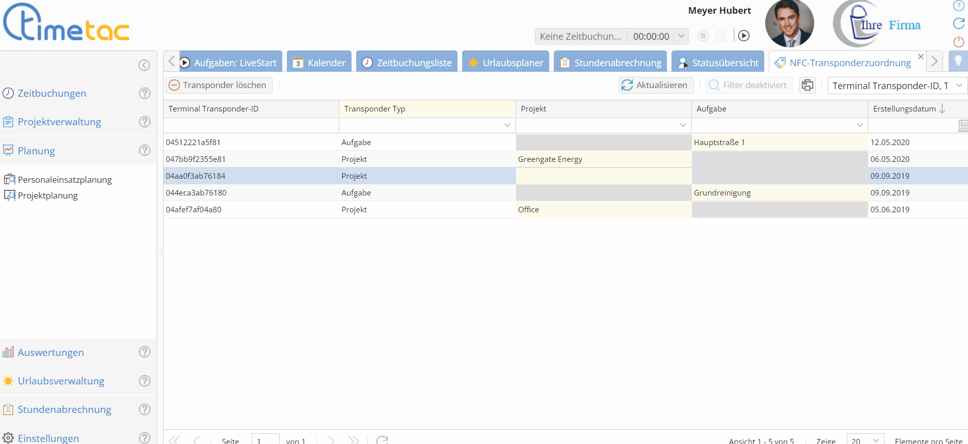 Die Zuordnung des NFC-Aufklebers der zuvor im Transponder-Modus Aufgabe eingelesen wurde nehmen Sie in der NFC-Transponderzuordnung der Projektverwaltung vor. Zeit die zwischen den Tätigkeiten erfasst wird, so wie beispielsweise Fahrzeit, kann manuell oder mittels NFC-Aufkleber im Auto erfasst werden.de