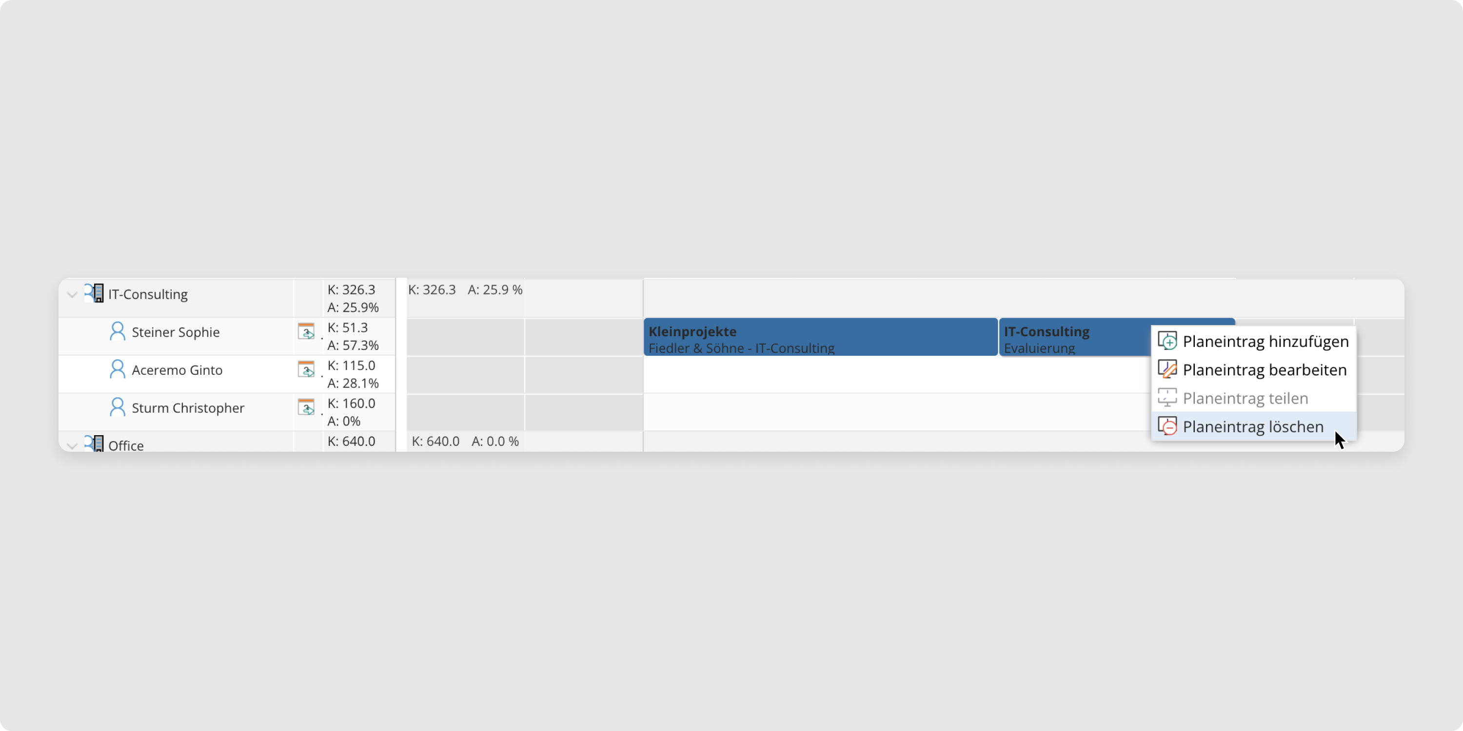 - Öffnen Sie dazu das Kontextmenü mit einem Rechtsklick auf den gewünschten Planeintrag.
