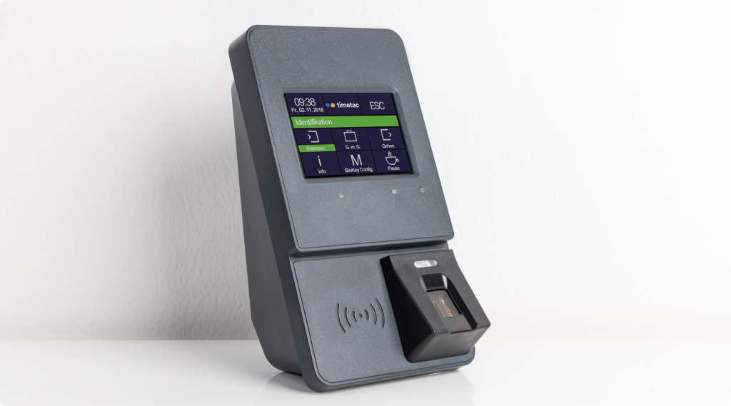 Das Fingerprintlesegerät vergleicht den eingelesenen Fingerabdruck mit den zuvor gespeicherten Abdrücken und kann so den richtigen Mitarbeiter zuordnen.