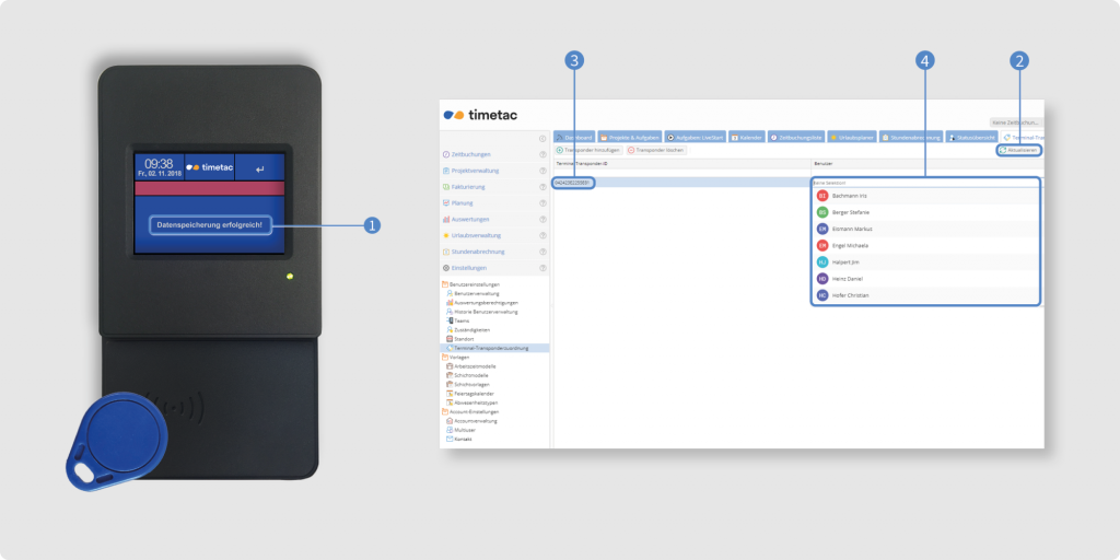 Damit Ihre Mitarbeitenden die Zeit korrekt buchen können, muss jedem User ein RFID-Transponder zugewiesen werden.