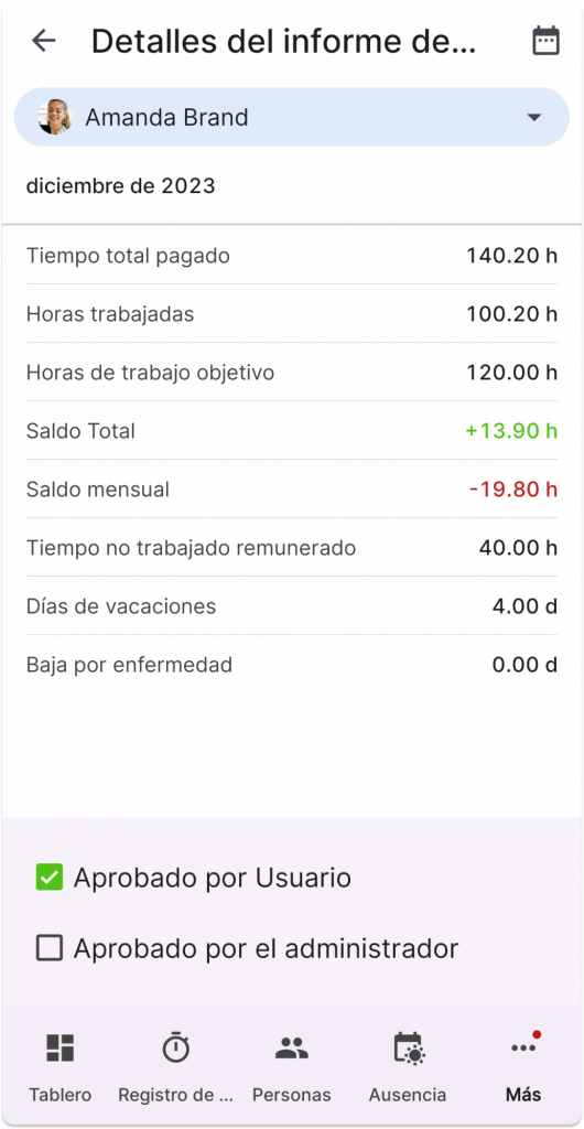 Además de todo eso, ahora los empleados también pueden validar que todos los registros horarios hasta ese día son correctos.