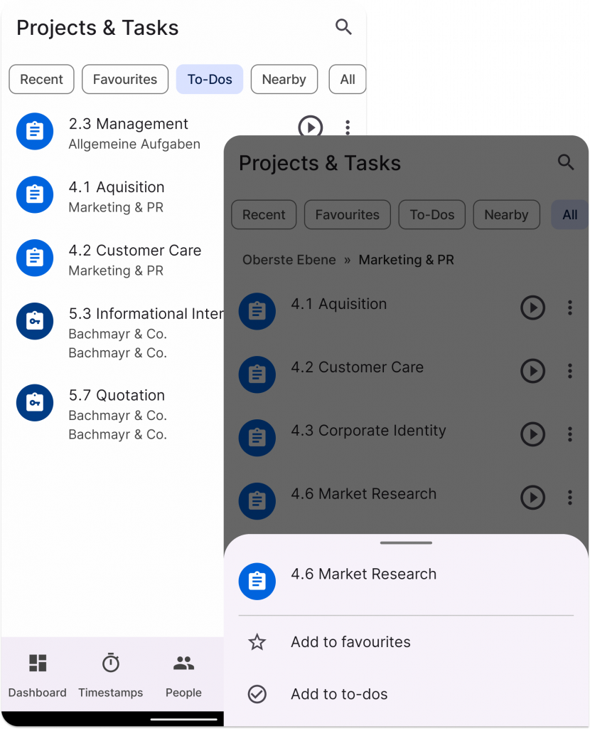 Now you can easily filter by favourites and to-dos so that you can find and start your various tasks more quickly. We hope that these new functions will help you to improve your day-to-day work in the app.
