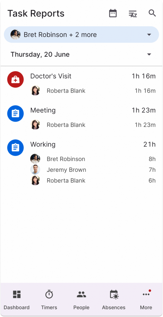 You have the option of creating various reports and analyses on individual employees, a specific time period or tasks. This feature is now also available in the mobile app for users who do NOT use the “Project time tracking” module.
