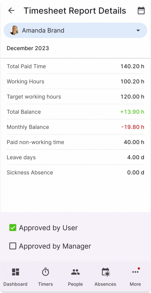 You can now approve timesheet reports in the app by yourself. When you approve them, you confirm that all records up to and including that day are correct.