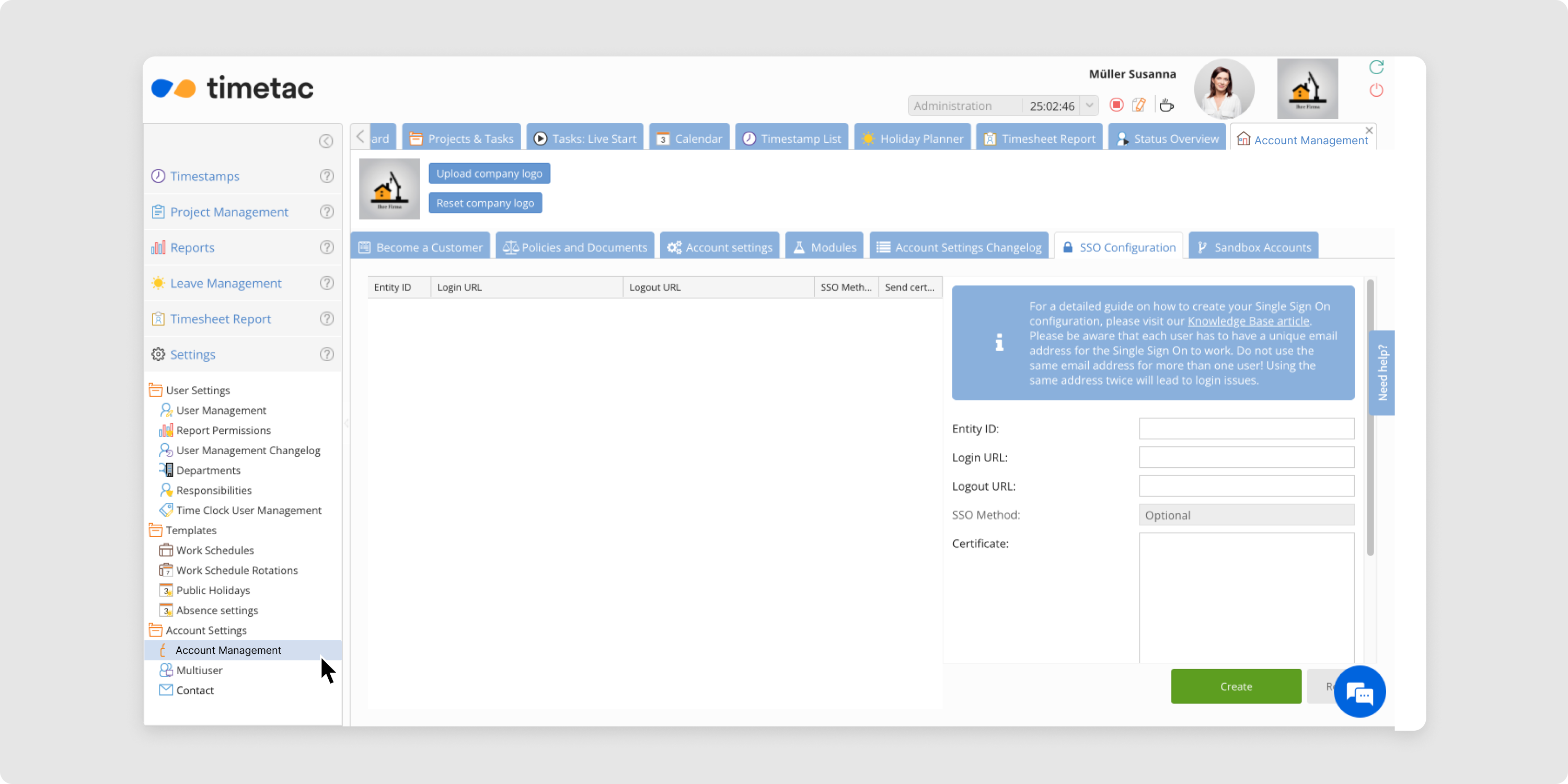 Getting started with SSO in TimeTac